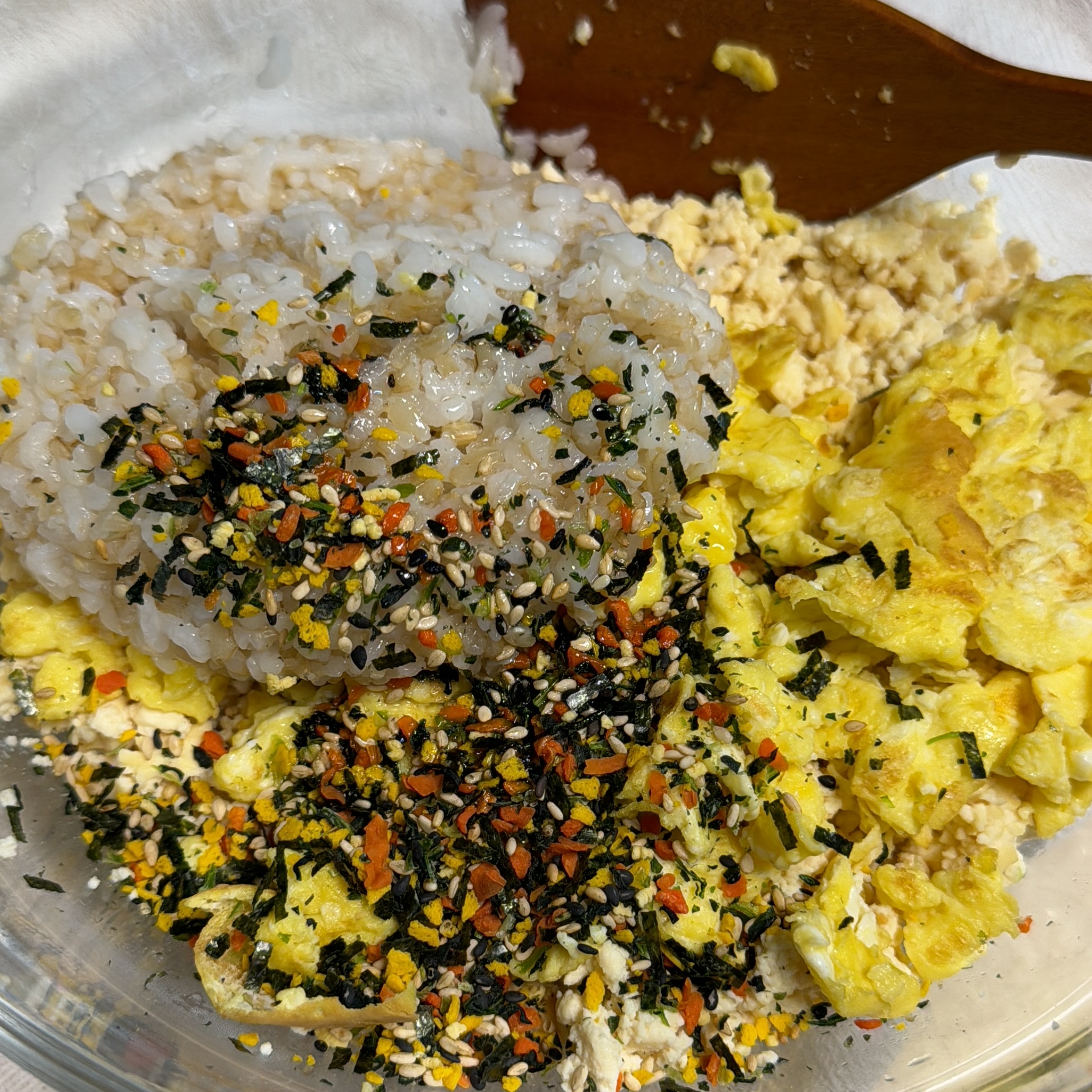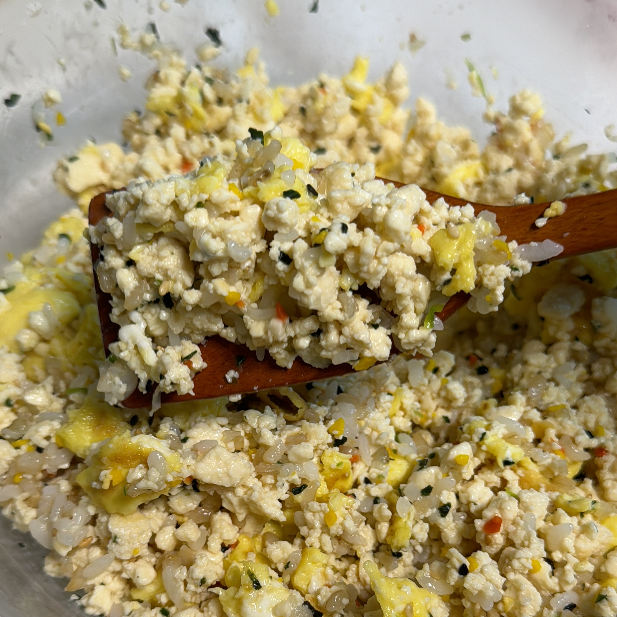 4. 큰 볼에 볶은 두부, 스크램블 에그, 현미밥 넣고 한 김 식혀준다.
