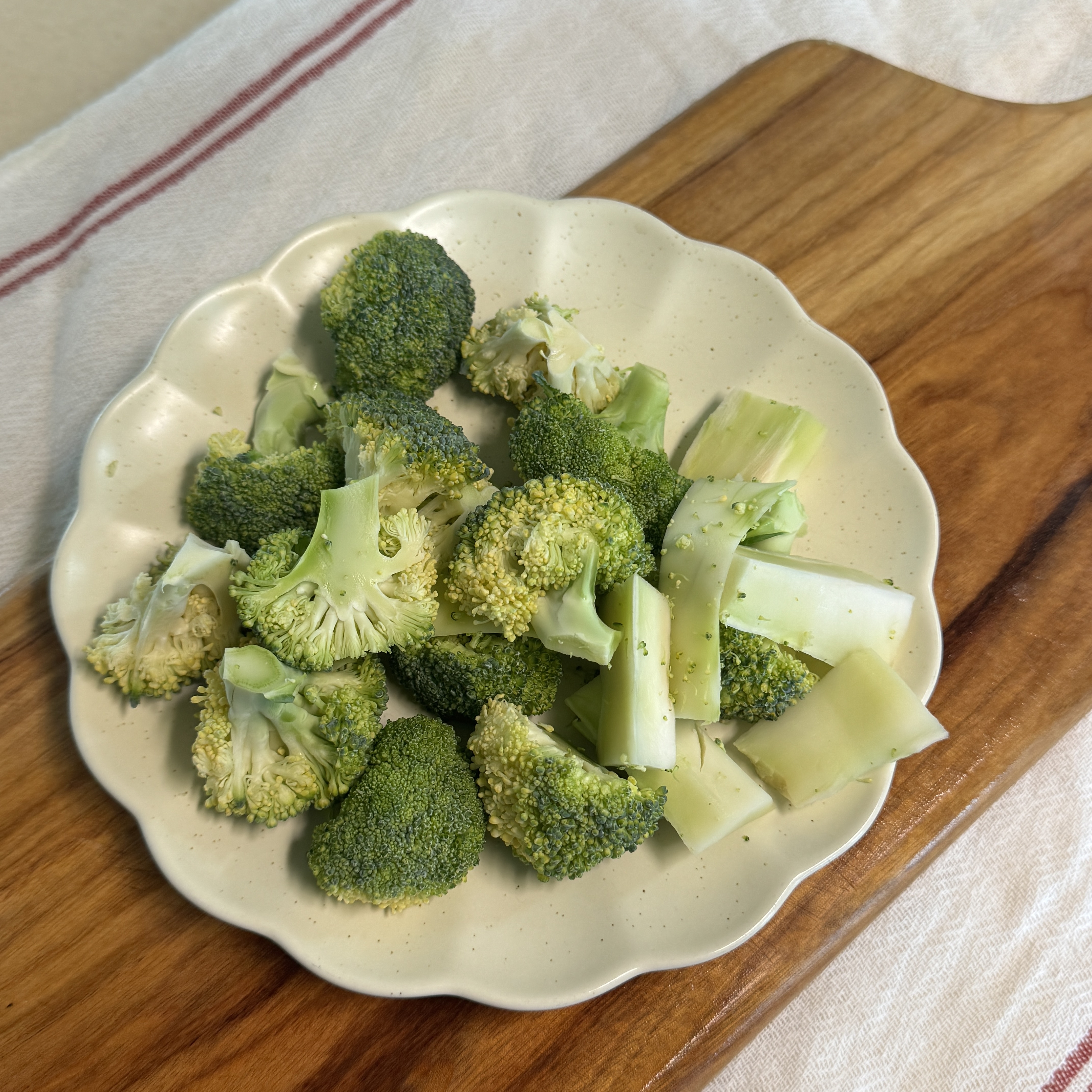1. 브로콜리는 줄기까지 함께 한 입 크기로 썰어 소금물에 살짝 데치고