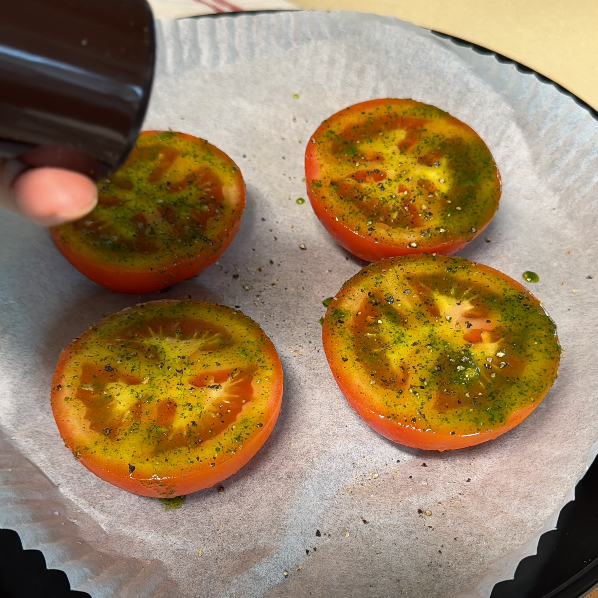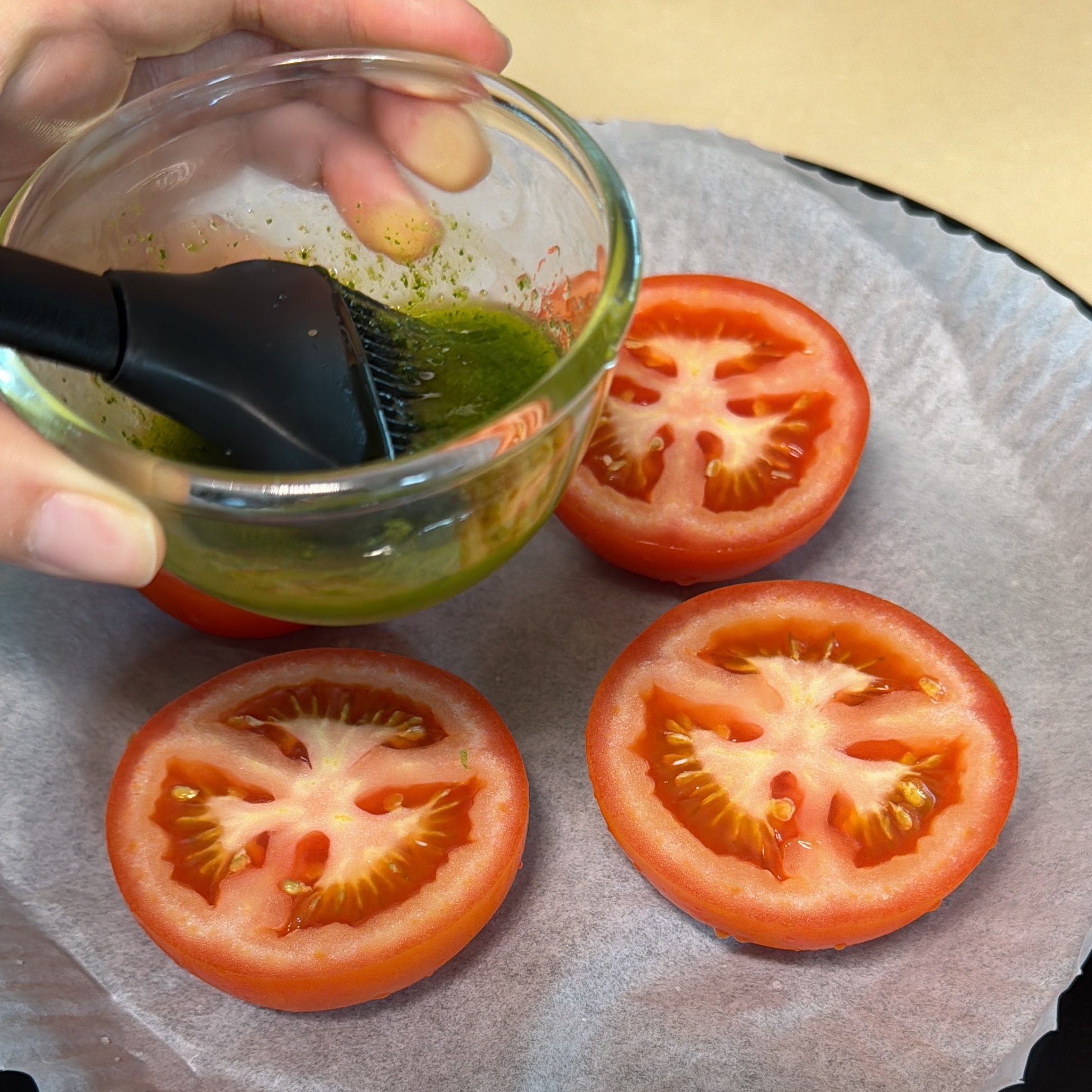 2. 토마토 단면에 준비한 양념류를 잘 발라준다.