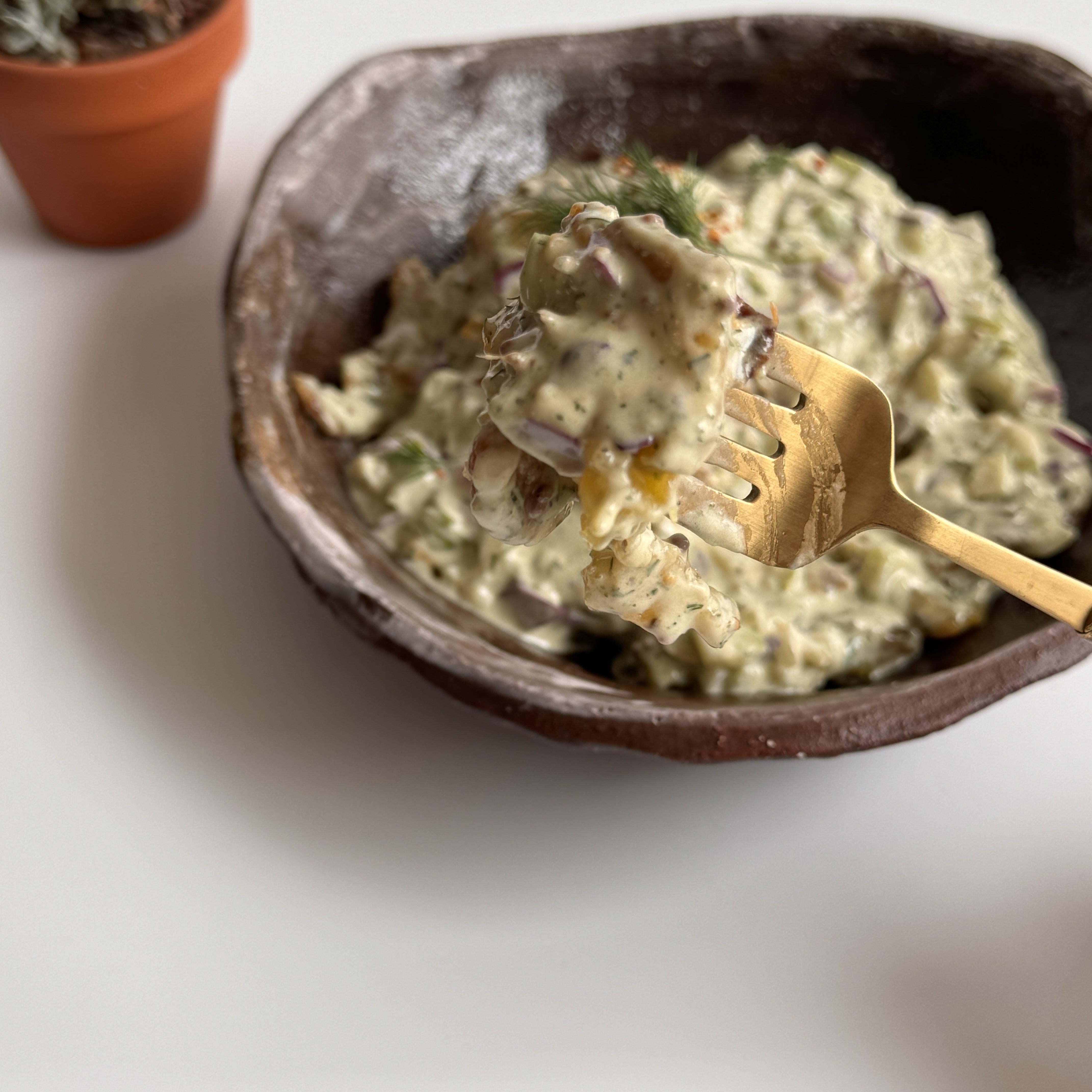 [마요네즈 4T, 요거트 6T, 레몬즙 3T, 만능 허브오일 3T, 홀그레인 머스타드 1t, 소금, 후추]