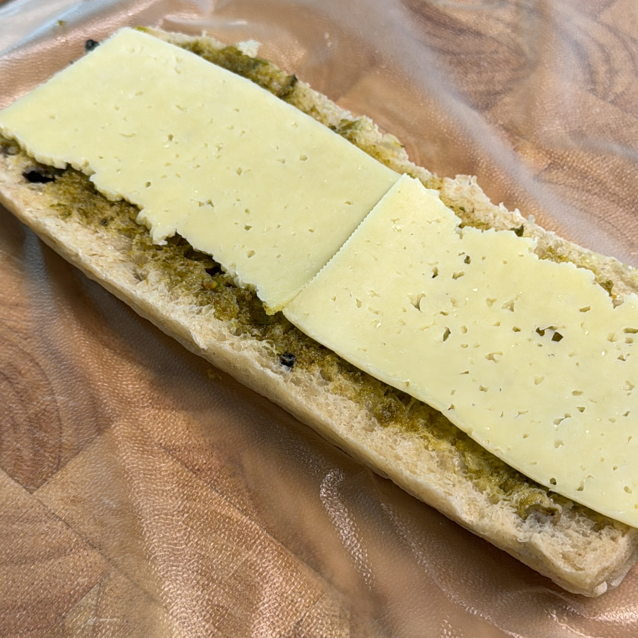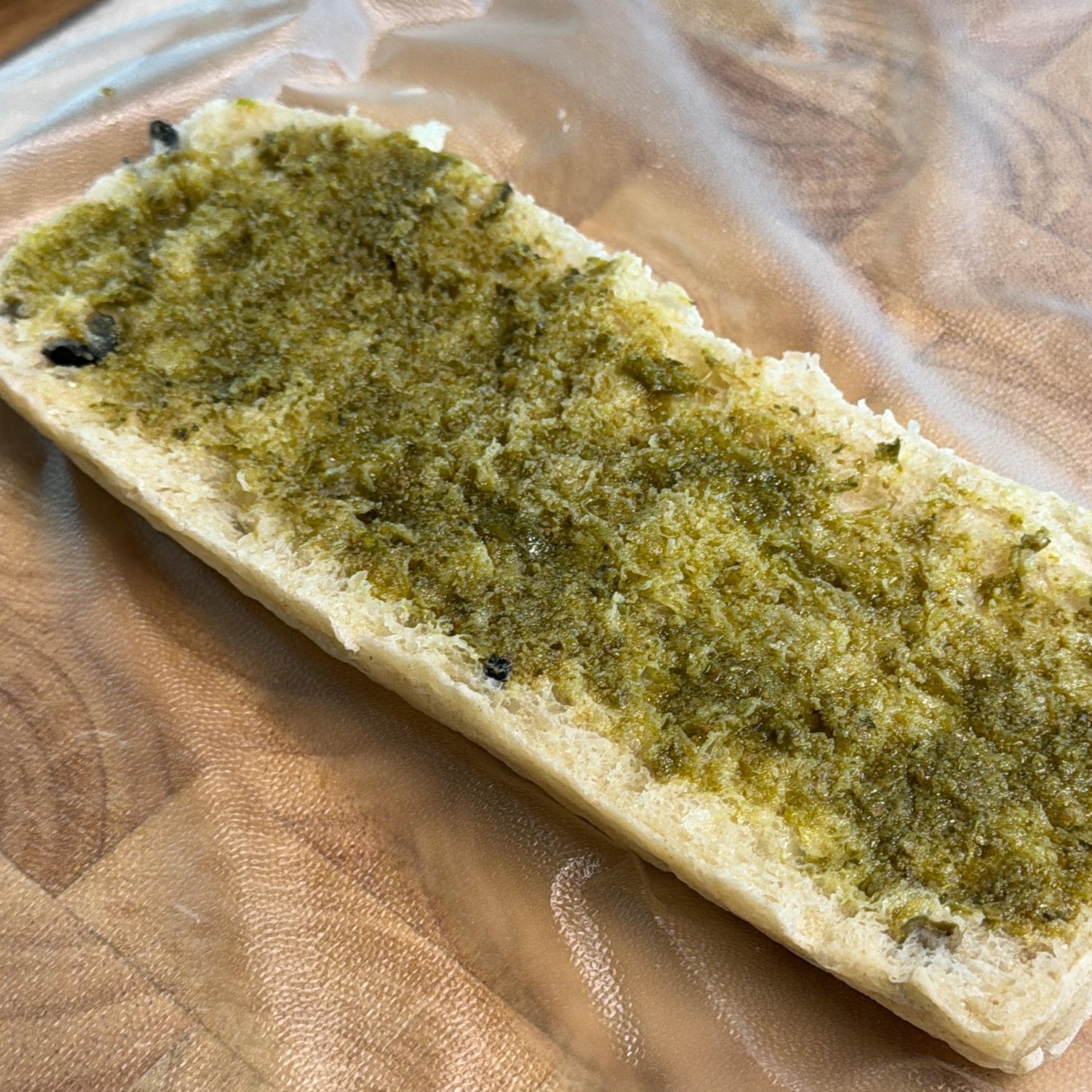 4. 치아바타는반 갈라서 아래위 바질 페스토 펴 발라주고