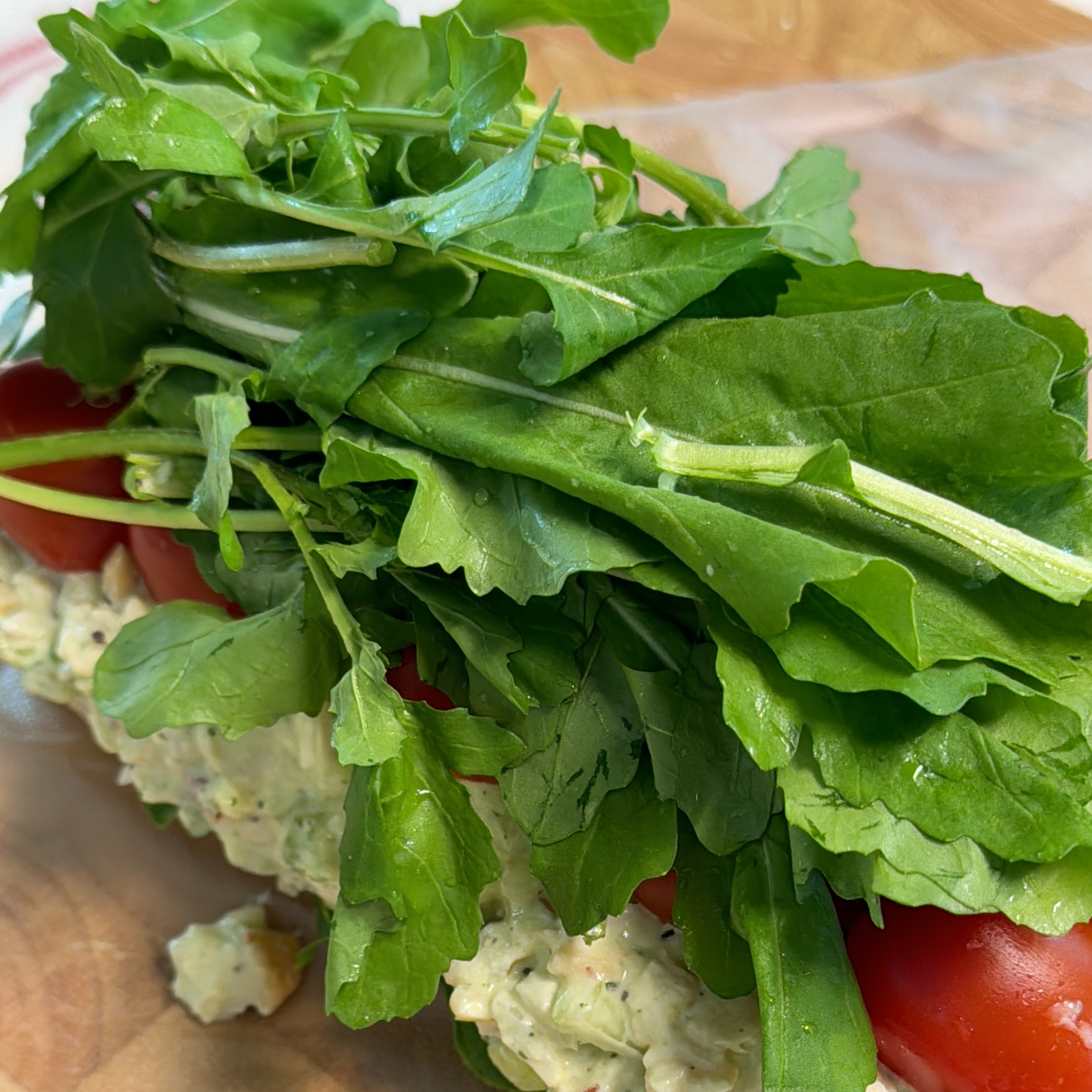 치즈 - 로메인 - 치킨샐러드 - 토마토 - 루꼴라 순으로 쌓아준다.